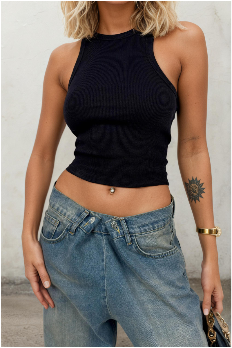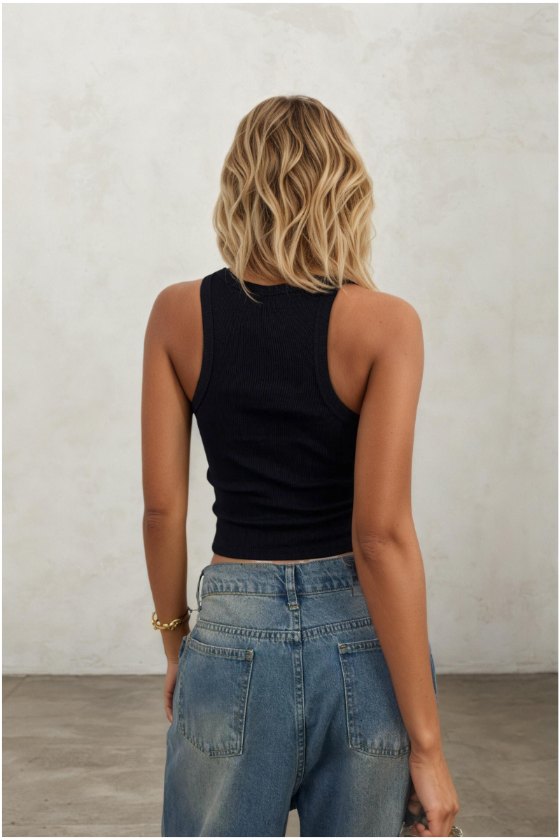 Minimal tasarımı ve güçlü duruşuyla öne çıkan halter yaka kolsuz siyah bluz, gardırobun en kurtarıcı parçalarından biri olmaya aday. Boynu zarif şekilde vurgulayan halter yaka detayı, omuzları ön plana çıkarırken modern ve feminen bir siluet oluşturur. Kolsuz yapısı sayesinde özellikle sıcak havalarda konfor sunarken, şık kombinler için de ideal bir temel parça olarak öne çıkar.