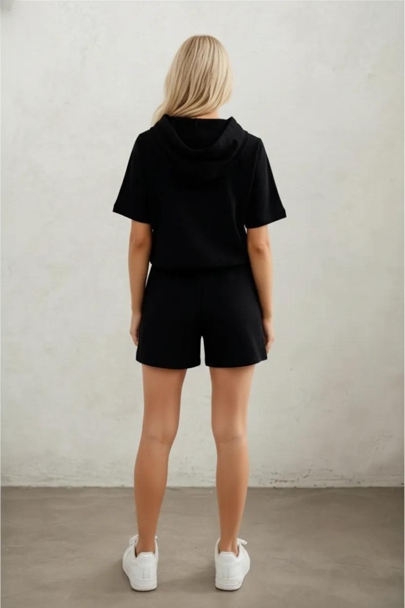 Kanguru Cep Detaylı Kapşonlu Hoodie ve Şort İkili Takım