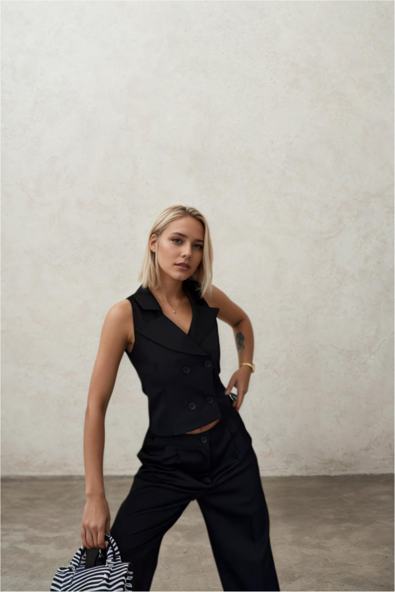 Şal yaka düğmeli yelek, modern ve zarif görünümüyle kombinlerinize sofistike bir dokunuş katar. Şık şal yaka detayı ve ön kısmındaki düğme tasarımı sayesinde hem günlük hem de ofis stilinde rahatlıkla tercih edilebilen bu yelek, minimal ama güçlü bir stil sunar. Katmanlı giyimin en trend parçalarından biri olan bu model, gömlek, tişört veya elbiselerle kolayca kombinlenebilir.
