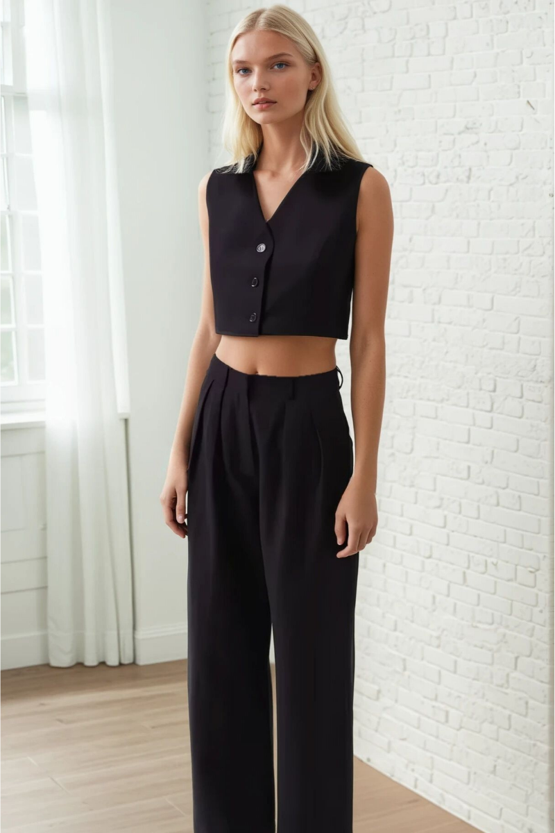 Akışkan dokusu sayesinde hem günlük kombinlerde hem de ofis ve özel davet stillerinde rahatlıkla tercih edilebilir. Crop bluz, gömlek veya basic tişörtlerle kolayca kombinlenerek farklı tarzlara uyum sağlar. Rengiyle her mevsim ve her ortam için ideal bir seçenek olan siyah geniş paça palazzo pantolon, stilinden ödün vermeden konfor arayan kadınlar için ideal bir tercihtir.