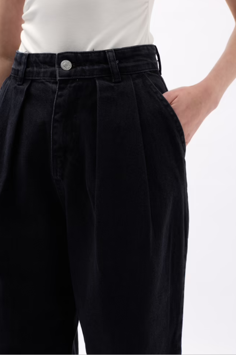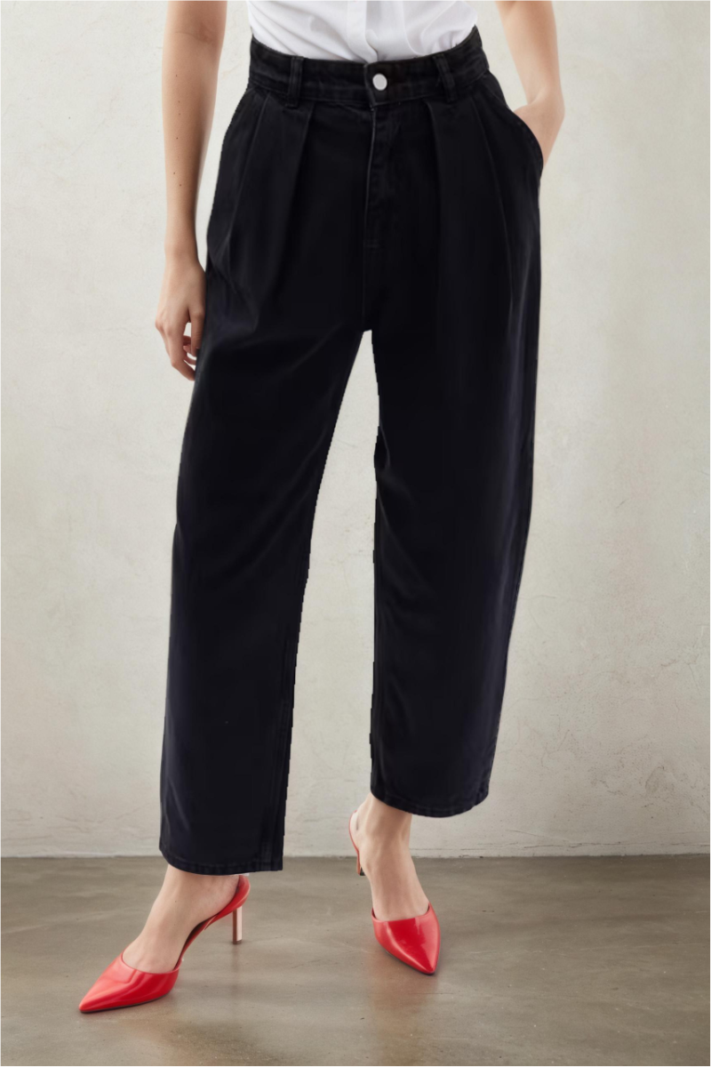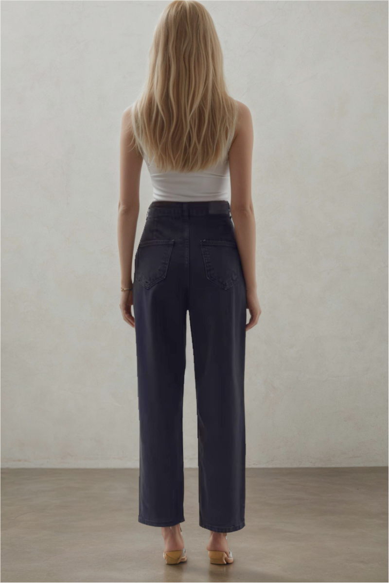 Siyah Mom Jeans – Yüksek Bel Düz Paça Düğmeli