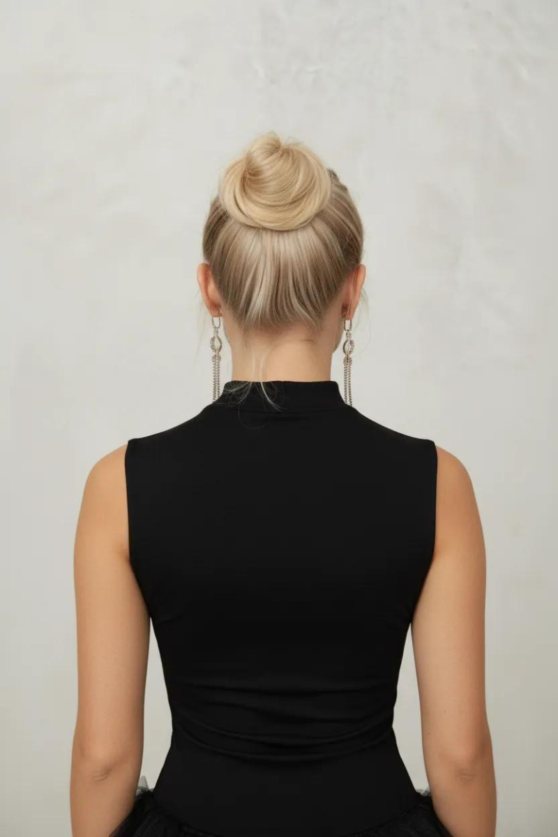 Şıklık ve zerafeti bir arada sunan Siyah Tül Etekli Kolsuz Mini Elbise, feminen detayları ve zamansız rengiyle gardırobunuzun en dikkat çekici parçalarından biri olmaya aday. Hafif ve uçuşan tül etek detayı, elbiseye romantik bir hava katarken, üst kısmındaki sade ve zarif tasarım vücuda oturarak siluetinizi kusursuz bir şekilde ortaya çıkarır.