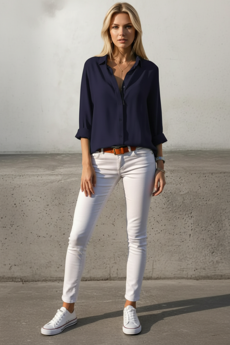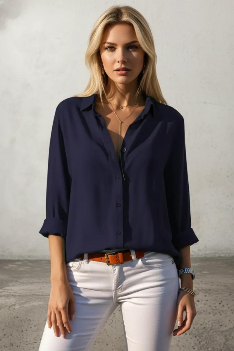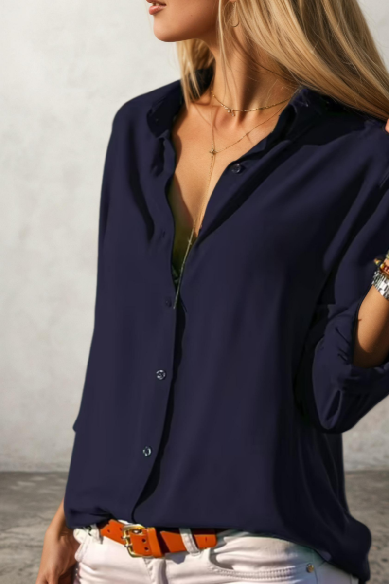 Lacivert Uzun Kollu Basic Viskon Gömlek | Şıklık ve Konfor Bir Arada