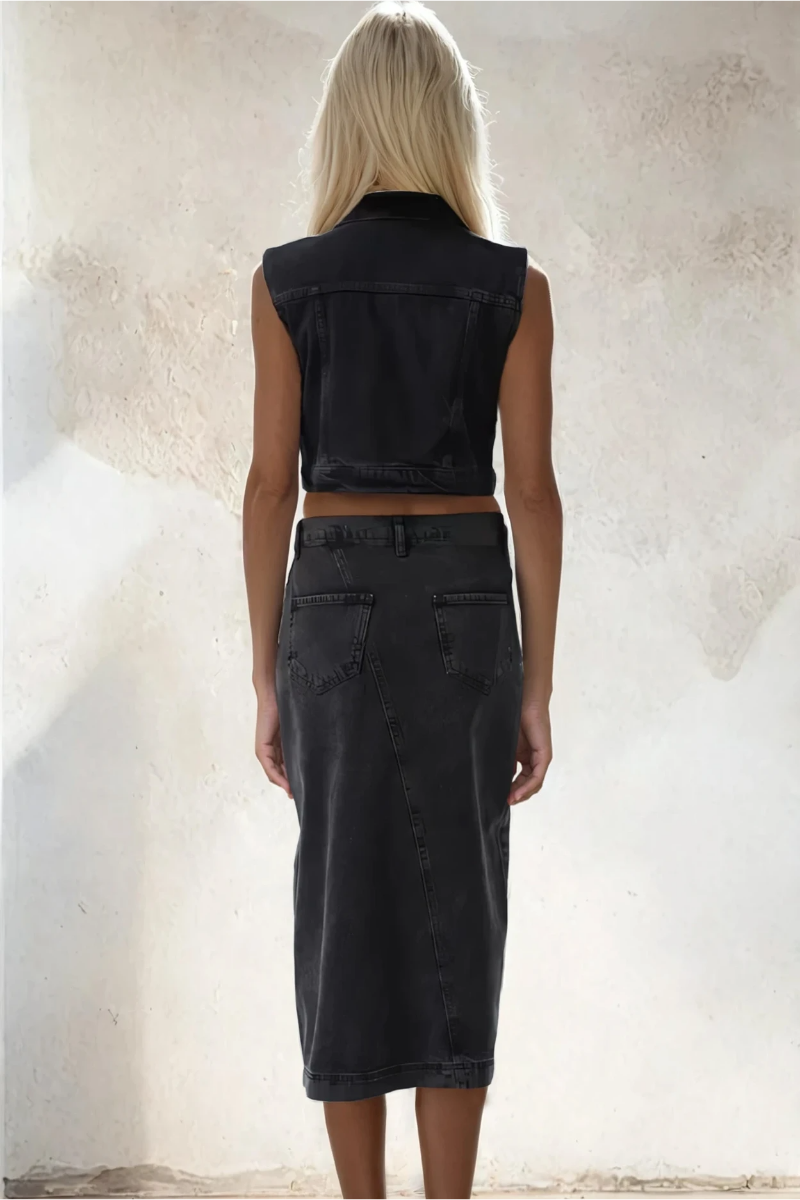 Siyah Asimetrik Midi Jean Etek Siyah asimetrik midi jean etek ile modern ve iddialı kombinler yapın. Günlük ve şehir stiline uyumlu bu denim etek ile şık kesim, rahat kullanım ve modern stil bir arada. AAH037