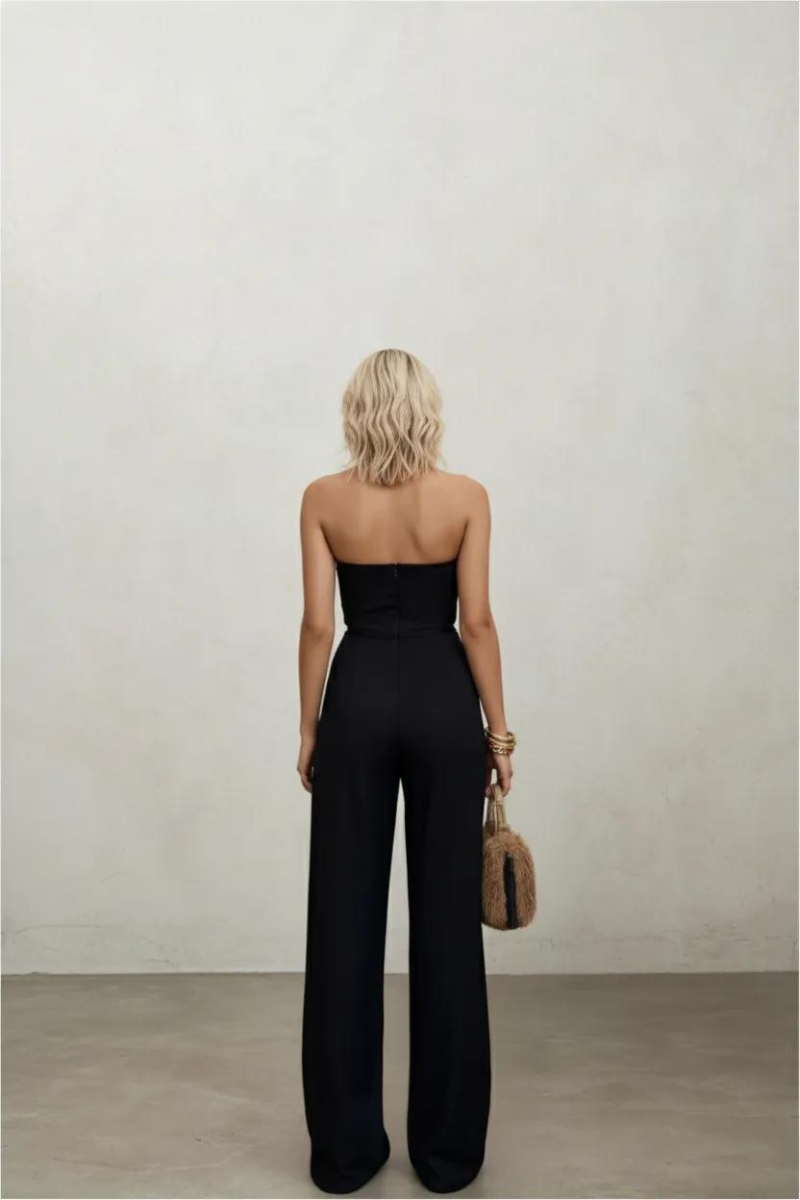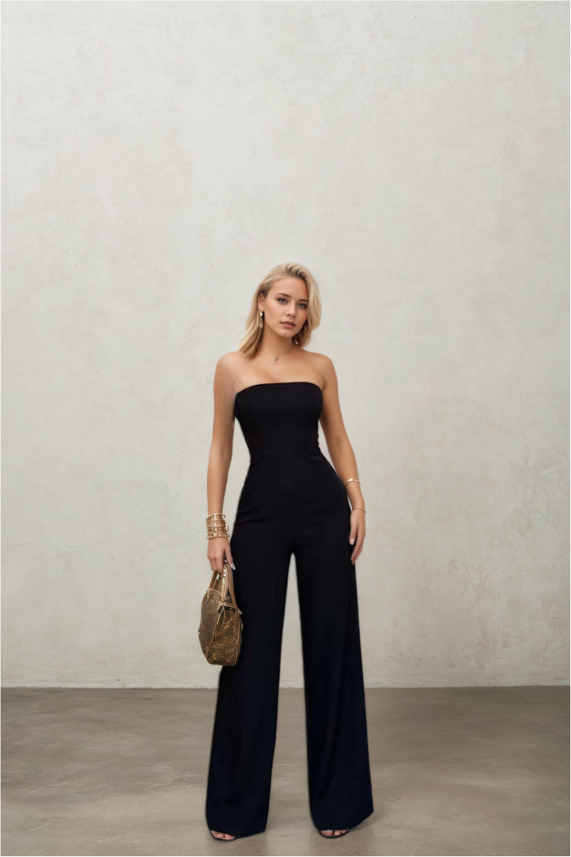 Siyah Straplez Tube Tulum modern, güçlü ve zahmetsiz şıklığı bir araya getiren zamansız bir parçadır. Straplez tube kesimi omuzları zarif şekilde ortaya çıkarırken vücuda oturan formu feminen bir siluet oluşturur. Minimal tasarımı sayesinde hem gündüz kombinlerinde hem de gece stilinde rahatlıkla tercih edilebilir.